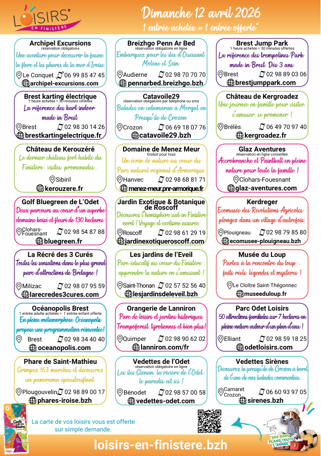 À cette occasion, plus de 100 sites en Bretagne proposeront l’offre :