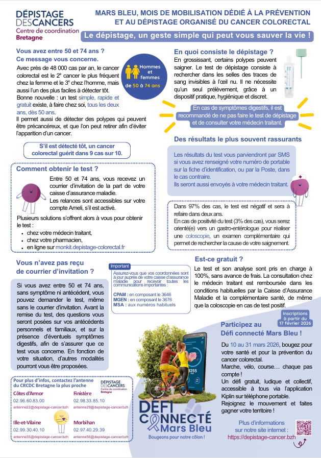 Mars bleu - mois dédié à la prévention et au dépistage du cancer colorectal