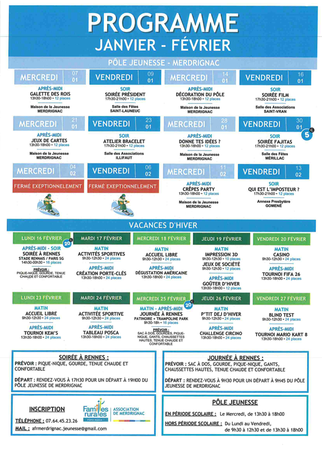 Programme janvier-février pôle jeunesse Merdrignac